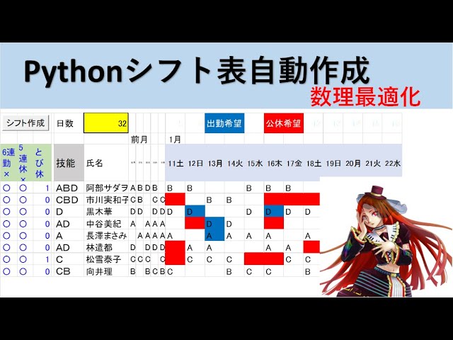 Pythonシフト表自動作成 数理最適化