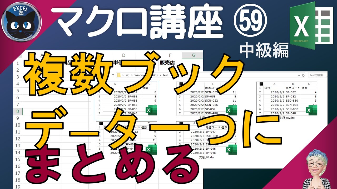 【マクロ中級】複数ブックのデータを一つのまとめブックのシートにまとめる、Excel塾のエクセルマクロ講座59回(中級編)