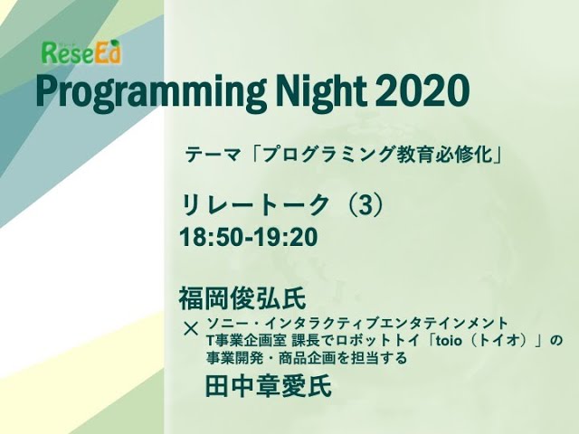 2020年6月30日開催 Programming Night 2020「プログラミング教育必修化」対談3 福岡俊弘氏× ソニー・インタラクティブエンタテインメント T事業企画室 課長でロボットトイ「toio(トイオ)」の… 続きを読む »Programming Night 2020「プログラミング教育必修化」対談3福岡俊弘氏×「toio(トイオ)田中章愛氏