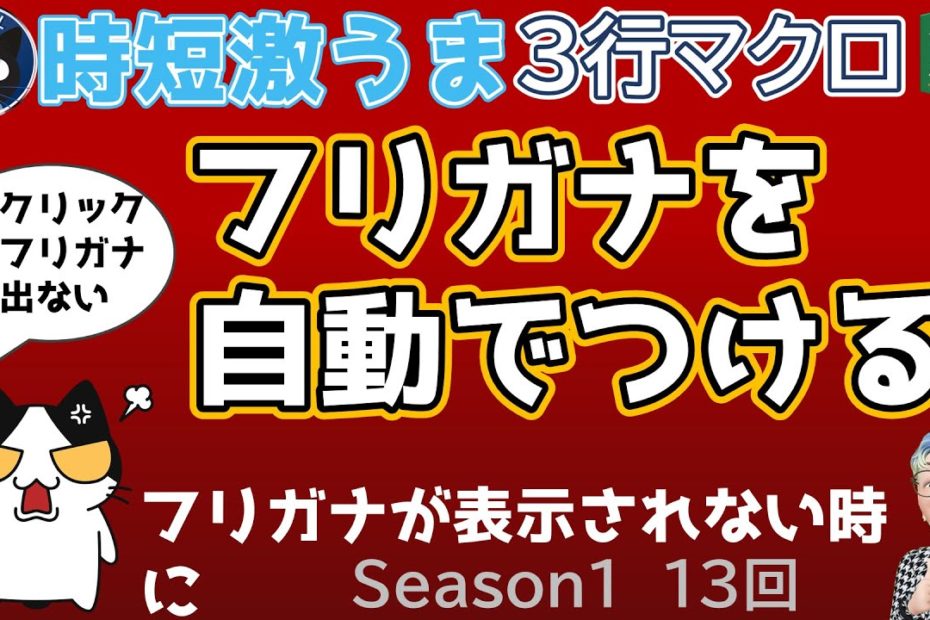 VBA フリガナを自動でつけるマクロ Excel塾の3行マクロ講座 13回(再)