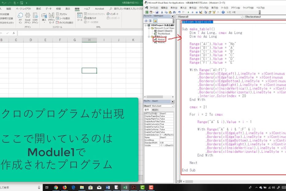 エクセルマクロVBAで表を自動作成する方法|罫線表示とヘッダー色変更