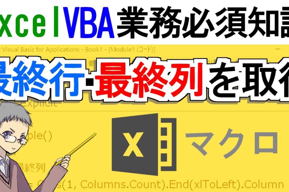【マクロ】最終行・最終列の取得方法を解説(エクセルVBA必須知識)by admin2021-10-12 Excelの表の最終行や最終列を取得するVBAコードを丁寧に解説します。エクセルマクロ初心者にもわかりやすく丁寧に説明しています。 サブチャンネルではVBAの基礎文法をゼロから丁寧に解説しています! ◆マクロちゃんねる https://www.youtube.com/channel/UClX2kAK2MWkZdnvyesDkbzA 関連記事: エクセルVBAマクロとは?できることを完璧に学ぶ初心者入門講座【たった1動画で全てが分かるExcelVBAの教科書】 【自動化Excel】毎日の売上日報を記録して『年間』『四半期』『月』ごとに自動集計する表とグラフの作り方 Excel VBAマクロで楽天市場Webスクレイピング プログラミング初心者向け!エクセルVBAとは?がわかりプログラミングに興味がわくExcelVBA入門講座 YapaYapaExcel Vol 1 コメントを残す コメントをキャンセルメールアドレスが公開されることはありません。 ※ が付いている欄は必須項目ですコメント ※ 名前 ※ メール ※ サイト 次回のコメントで使用するためブラウザーに自分の名前、メールアドレス、サイトを保存する。 上に表示された文字を入力してください。 前PythonでWebスクレイピイング|たった2時間で自動ログインやデータ取得、画像保存まで学べます【プログラミング初心者でもできる】次PythonでクソRPAを作ってみたw