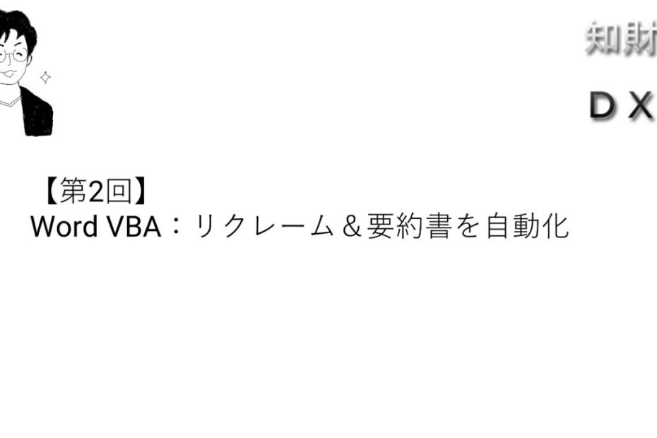 【第2回】Word VBA:リクレーム&要約書を自動化by admin2021-11-05 明細書の体裁的な記載の代表格であるリクレームを、VBAで自動作成&自動更新できるようにします。同じ要領で要約書も自動作成&自動更新できるようになります。 ソースを確認したい方は以下 https://note.com/__okkun/n/n54982531fe45 関連記事: 【完全版】Excelマクロ 本の著者が教える、2時間で12の初心者入門講座。忙しい人のための速習コース【※特典あり】 [EXCEL] 自動記録マクロで作れる集計機能付き勤務時間表 【エクセルVBA講座】スクレイピング~注意点~【上級55回】 ExcelVBAレッスン初級コース①【マクロとは?VBAとは?】 コメントを残す コメントをキャンセルメールアドレスが公開されることはありません。 ※ が付いている欄は必須項目ですコメント ※ 名前 ※ メール ※ サイト 次回のコメントで使用するためブラウザーに自分の名前、メールアドレス、サイトを保存する。 上に表示された文字を入力してください。 前Python業務自動化入門 画像認識技術AIを使った自動仕訳次Pythonでパチンコは儲かるのか検証してみた!!