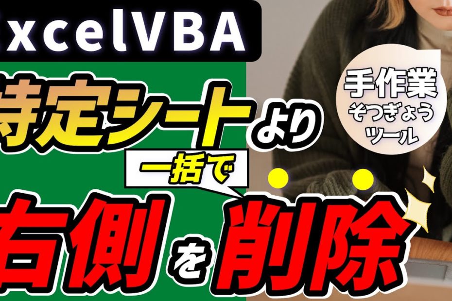 エクセルマクロで、特定シートより右側を全て削除するExcelVBAコードをご紹介します。 ブログからコードをコピーできます。 https://kirinote.com/excelvba-sheetdel-right/ &… 続きを読む »VBA 特定シートより右側を削除:シート操作の自動化に挑戦!【プログラミング初心者向け入門】