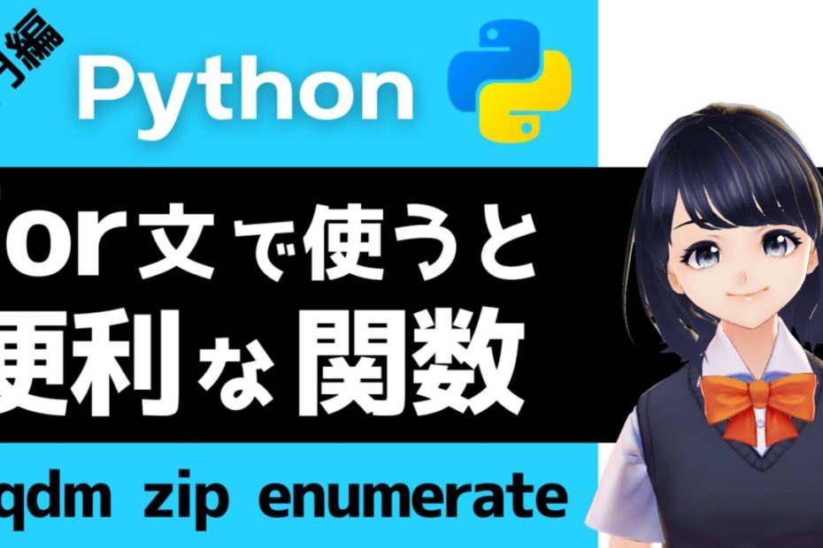Pythonのプログラミングに関する情報を発信しているサプーです! この動画はPythonのfor文で使うと便利な関数、tqdm, zip, enumerateについて解説しています。 ・tqdmとは? ・zipとは? … 続きを読む »【Pythonプログラミング入門】for文で使うと便利な関数、tqdm, zip, enumerateを解説!〜VTuberと学習〜 【初心者向け】
