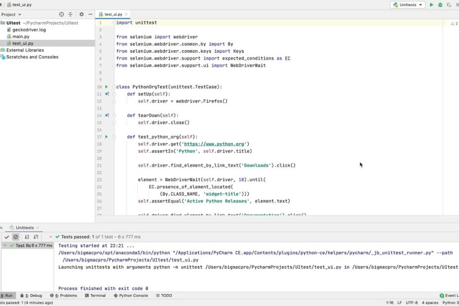 今回はUIテストができるseleniumを使ってPython.orgのメニューをクリックしてその先に指定したテキストがあるか、検索したデータがきちんと存在するかのテストをしました。