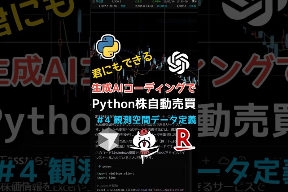 生成AI搭載エディタ「Cursor」を使えば誰でも株自動売買システムが作れるかを検証するチャレンジ第4回。こんかいは観測空間のデータ定義をしたよ。 強化学習AIは観測空間として定義されたデータの状態によって次のアクション… 続きを読む »【株自動売買4】生成AIバイブコーディングで誰でも簡単に株自動売買システムが作れる時代に!観測空間のデータ定義をするよ!プログラミングチャレンジ【億り人】