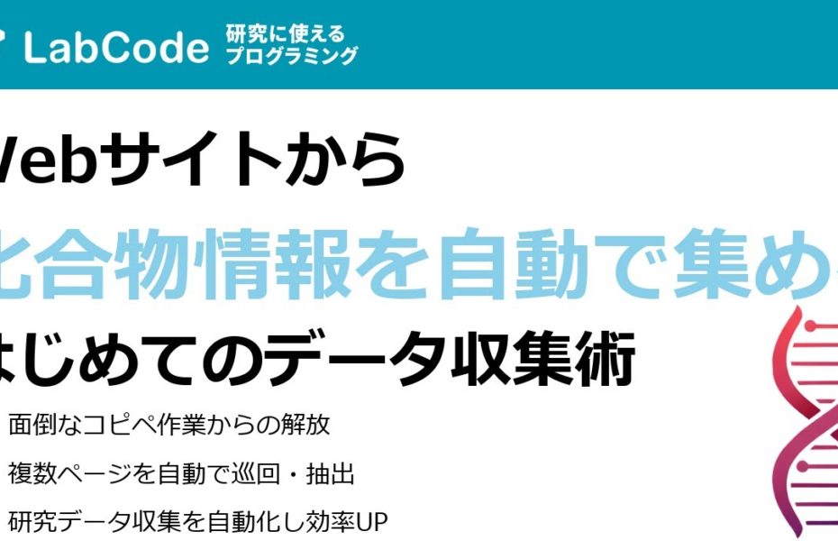 前の動画:https://youtu.be/oB_FSYYVKGw 次の動画:https://youtu.be/Mp0KOG-CsXo 研究に使えるプログラミングの情報を発信しているLabCode(ラボコード)です! 今… 続きを読む »【ネットワーク薬理学#3】【Pythonで研究自動化】SeleniumでWebスクレイピング!PubChemから化合物IDを自動で一括取得(漢方成分の抽出シリーズ中編)