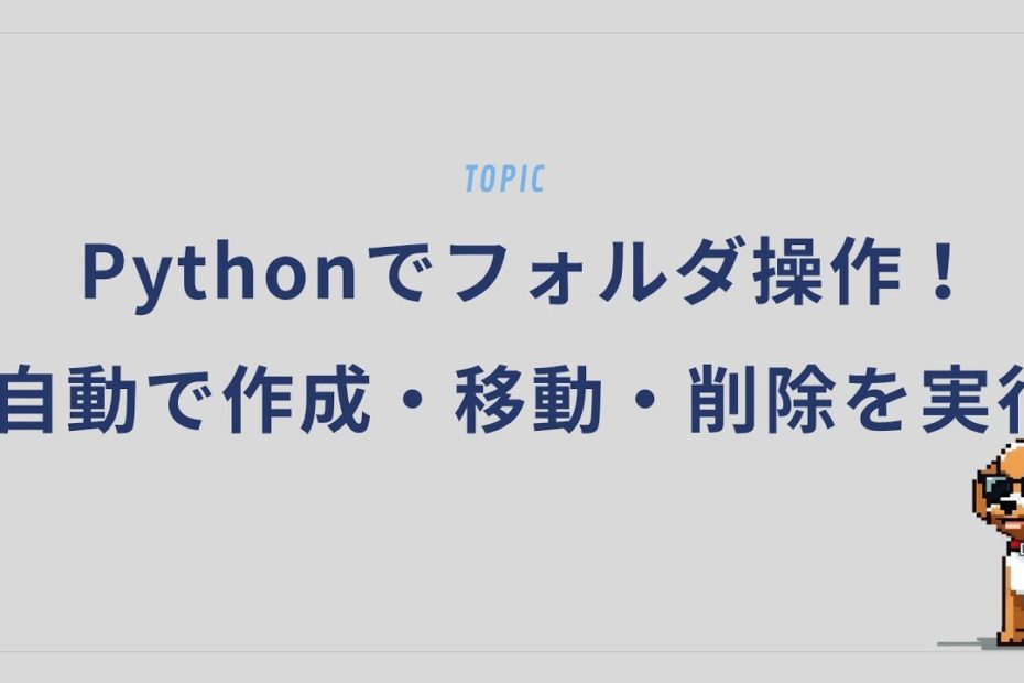 #Python #フォルダ操作 #自動化 #ファイル管理 #プログラミング Pythonを使ってフォルダ(ディレクトリ)を作成・移動・削除する方法を解説!osやshutilモジュールを活用して、ファイル管理を自動化しよう… 続きを読む »Pythonでフォルダ操作!自動で作成・移動・削除を実行