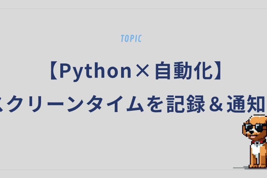 Pythonを使って「PCの使用時間(スクリーンタイム)」を記録し、一定時間を超えたら通知するツールの作り方をご紹介します。 テレワークや勉強の集中管理におすすめです! 初心者でも分かるようにステップ解説付き。自作タイム… 続きを読む »【Python×自動化】スクリーンタイムを記録&通知するアプリを作ってみた!